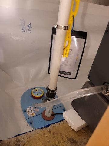 A SumpPump is installed to drain the water out of the crawl space and prevent standing floods or leaks.