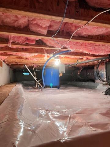 This nasty crawl space made the whole house smell musty, damp, and moldy — for over 10 years! This often happens when moisture gets trapped in crawl spaces with no vapor barrier, and doesn't have a way out. So, the home absorbs the moisture. This causes mold, wood rot, insects, and critters to thrive in poorly managed crawl spaces. Luckily, they called us! After clearing out all organic and rotting material, we installed our CleanSpace© encapsulation system, which includes a heavy, 20 mil thick liner that's twice as thick as industry liners (9 mil). CleanSpace© is manufactured in seven layers to optimize puncture resitance, brute tear resistance, and flexibility. It's permanently held in place with drilled-in fasteners and spikes. Then, all edges, seams, and pipe penetrations are sealed. If you'd like a free inspection AND free estimate of work for your home, contact us today!